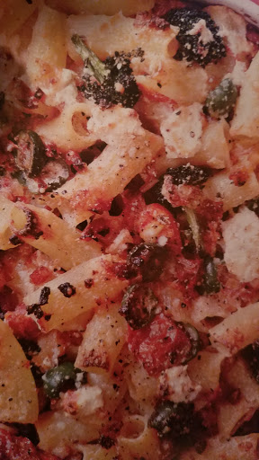 Baked Rigatoni with Broccoli, Green Olives and Pancetta