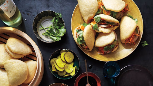 Place a bamboo steamer lined with parchment paper over a large pot of simmering water (or you can use a steamer basket). Steam bao in batches until firm to the touch and cooked through, 10–12 minutes per batch.