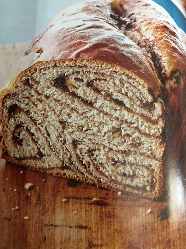 Fold the rolled dough into thirds, twist, and place into a prepared pan. Repeat rolling, spreading, and twisting with remaining dough and filling. Cover loaves; allow to rise in a warm place until nearly doubled in size, 1 1/2–2 hours.
