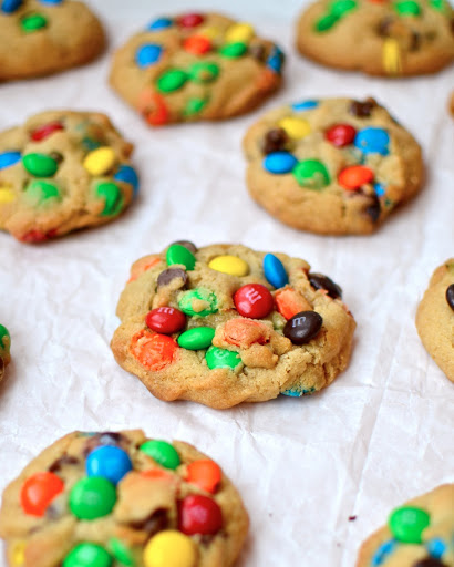 Preheat oven to 375ºF. Roll cookies to desired size and place on ungreased baking sheet a couple inches apart. Bake cookies for about 7-10 minutes or until the edges are golden brown. If you saved some M&M's, press them into the tops of the warm cookies.