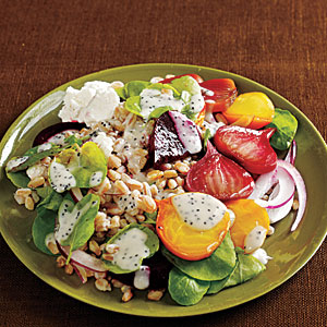 Farro Salad with Roasted Beets, Watercress, and Poppy Seed Dressing