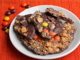 • Assorted Halloween candy, about 15 pieces or packs (you want the equivalent of 1 to 1 1/2 cups chopped candy) 20 ounces milk chocolate