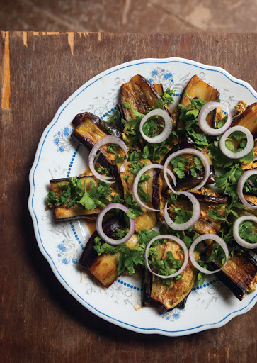 Eggplant: .Badridzhani Nigvsit (Fried Eggplant with Walnut Sauce)