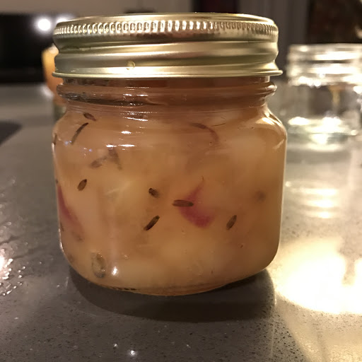 Prepare 2 pint jars or 4 half pint jars and a canner. I used 4 half pint jars.