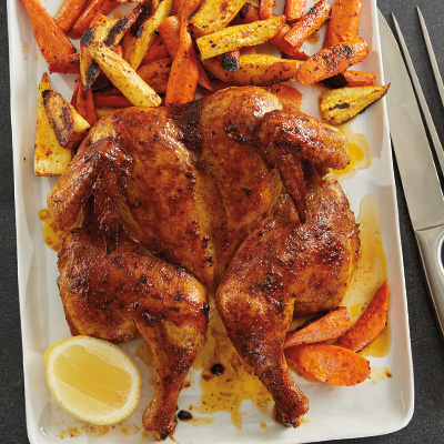 WHOLE****Spatchcock Roasted Chicken with Carrots and Parsnips
