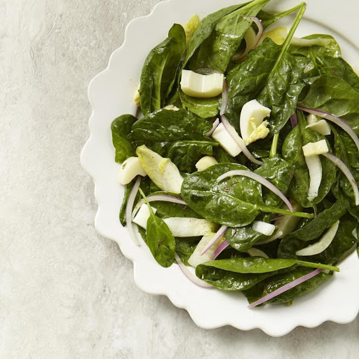 Whisk lemon juice, oil, tarragon, salt and pepper in a large bowl. Add spinach, endive, hearts of palm, eggs and onion; toss to coat.