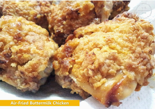 Buttermilk marinade makes the chicken stay juicy and tender. I marinated the chicken thighs overnight, and coated with flavorful breading. Placed in the fryer basket, 8 minutes skin side up, and 10 minutes on second side. The chicken turned out great. Outside is crispy and golden, inside is tender and juicy. My children told me that this air-fried chicken taste better than what they had in most restaurants!