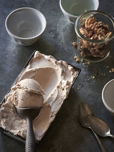 Transfer to an ice cream maker, and churn according to the manufacturer's instructions. Transfer to a sealed container, and freeze until firm.