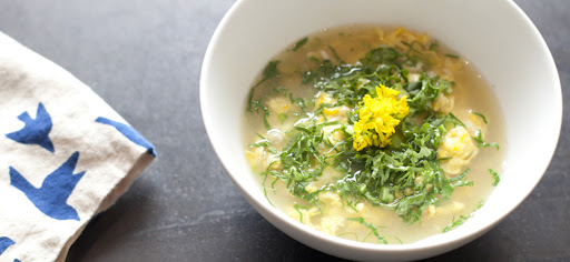 Use the fork to stir the beaten eggs into the rice-broth mixture, stirring to combine and cooking until the eggs shred into long, opaque ribbons. Serve the porridge as a second course to the chicken with broth.