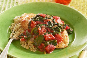 ADD tomato mixture to skillet; bring just to boil, stirring frequently. Add spinach; cook on medium heat 2 to 3 min. or just until spinach starts to wilt, stirring constantly.