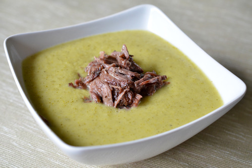 This recipe is a perfect example of what I call garbage soup: I pull out whatever vegetables are left in my crisper and throw them in a pot with some pre-made broth. This formula works with just about anything, but if you happen to have some broccoli florets and leeks in the fridge, make this blitzed cream of broccoli soup. My chef told me a long time ago that her secret ingredient in pureed soups is a bit of diced apple so I always toss some in.