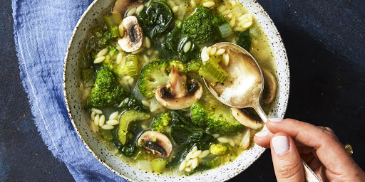 Supergreen Mushroom & Orzo Soup