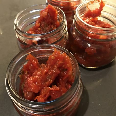 This savory jam is perfect with rustic bread and fresh creamy butter. Also is a perfect sandwich or hamburger spread.