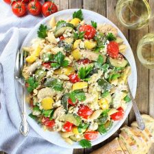 Paleo TOMATO PIE WITH ALMOND FLOUR CRUST + CREAMY CASHEW HERB FILLING Grilled Chicken and Squash with Tomato Feta Pasta