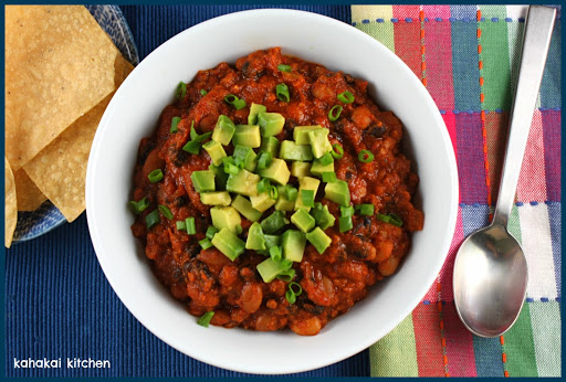 This is classic chili – more or less Tex-Mex style. If you make it with the whole ancho chile pods (sometimes called pasilla chile pods on the West Coast), use coarse-ground meat (the classic “chili grind” in the Southwest), brown it well, and add fresh-ground spices; it’ll be one of the best chilis you’ve tasted.