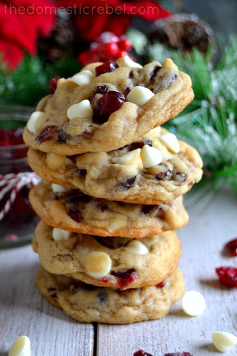 You could use just about any dried fruit in these, but dried cranberries go so well with the white chocolate chips! They're perfect for wintertime.