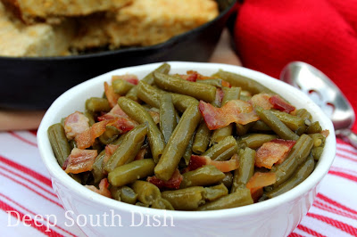 Cook's Notes: I start with water and add chicken base to the beans, however you may certainly use all chicken broth. Remember, these beans are slow stewed, not boiled. They need to remain on a very bare simmer the entire cooking time - do not let them boil. Use fresh, raw green beans only, not frozen or canned. May substitute peeled Russets or your favorite potato, such as Yukon Gold. Tasso is highly seasoned and country ham is highly salty. Do not add any additional seasonings until you taste the beans first when using those. Freeze any leftover pot likker that doesn't get eaten to use in other recipes, like beans, soups and stews.