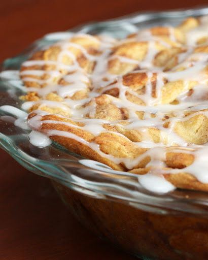 Cover with foil and bake for 35 minutes. Remove the foil and bake for another 10 minutes, uncovered. Allow the pie to cool and drizzle with icing.