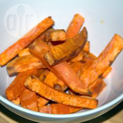 Peel the sweet potatoes then slice them into chips. Try and keep as regular as possible so there is a consistent cooking time.