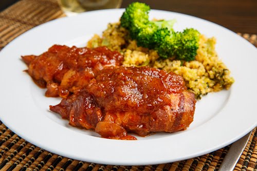 Slow Cooker Bacon Wrapped Apple BBQ Chicken