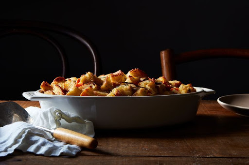 Ciabatta Stuffing with Chorizo Sweet Potato and Mushrooms