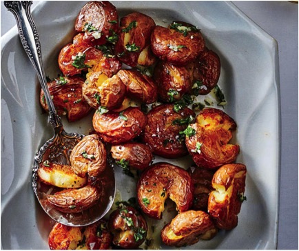 Stir together butter, chopped parsley, thyme, rosemary, minced garlic, pepper, and remaining 1 tablespoon oil and 1/2 teaspoon salt. Brush mixture over potatoes, and serve immediately.
