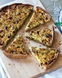 5.Divide the bacon-and-leek filling between the tart shells. In a bowl, whisk the eggs with the egg yolks and heavy cream. Season lightly with salt and white pepper. Pour the custard into the tart shells and bake for about 30 minutes, rotating the sheet halfway through for even baking, until puffed and lightly browned. Transfer the quiches to a rack and let cool for 15 minutes. Remove the rings, cut the quiches into wedges and serve.