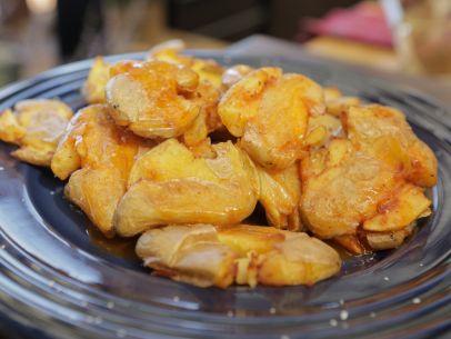 Working in batches, fry the smashed fingerlings until golden and very crispy, 7 to 8 minutes. (It's OK if they break up a little; it just means more crispy edges!) Drain on paper towels. Serve hot with the BBQ sauce.