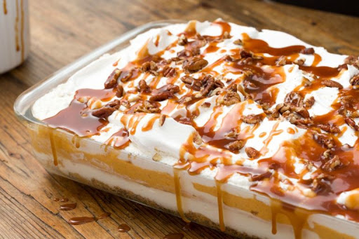You'll be overcome with pleasure as you work through each layer of this scrumptious Pumpkin Cheesecake Dessert Lasagna. Don't forget to drizzle with caramel and garnish with pecans before serving. It's the little things that make the biggest difference. Yum!!
