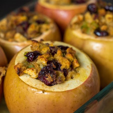 7. Place dish in oven and bake for 30-35 minutes, or until stuffing has browned and apples are tender.