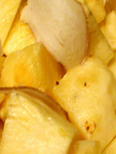 Bring sugar and water to a boil in a small saucepan over moderate heat. Add ginger and reduce heat to simmer. Stir until sugar dissolves and ginger infuses syrup, about 2 minutes. Remove from heat and take out ginger. Cool and pour over chunks of pineapple, sliced kiwi, sliced bananas, or any of your favorite fruit combinations.