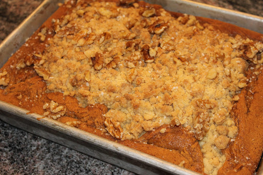 10.Add flour and sugar and sprinkle over batter in the pan.