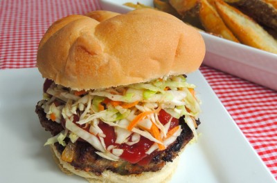 Serve on your favorite buns. Preferably topped with ketchup and slaw (recipe for burger slaw coming later this week!)