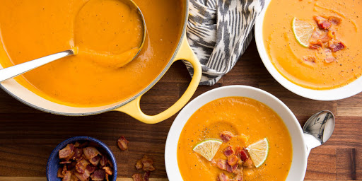 Blend with immersion blender or transfer to a blender in batches and blend until smooth. Stir in lime juice.