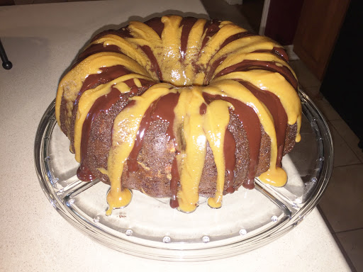 In 2 small microwave safe glass bowls, combine the glaze ingredients. Microwave for 30 seconds, remove from microwave, & stir well. Return to microwave for 15 seconds, whisk, then continue to repeat as needed until mixtures are smooth. Spoon or pour over cake.