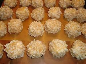 Melt caramels, margarine, and condensed milk in double boiler. Roll marshmellows in caramel mixture. Immediately roll in rice krispies. Place on wax paper to dry. Store in air tight container.