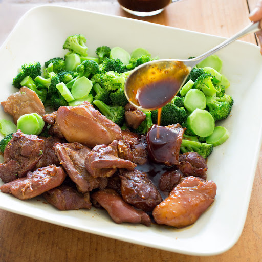 Traditional Vietnamese-style caramel chicken promises a dish that balances a bittersweet caramel with salty and spicy flavors, but most recipes miss the mark. Cooking the caramel until it was a deep, dark color was key to achieving the right complex bittersweetness, while fish sauce (in a 1:4 ratio of fish sauce to caramel) lent the traditional balancing salty component. A combination of ginger and black pepper provided the right amount of heat. Cutting the boneless, skinless chicken thighs in half, rather than into smaller bits as called for in many of the recipes we found, gave the chicken more time to absorb the sauce, while a quick soak in a baking soda–water bath helped the chicken stay juicy over a longer cooking time that turned the meat ultratender. To complete the meal, we steamed broccoli to serve alongside.