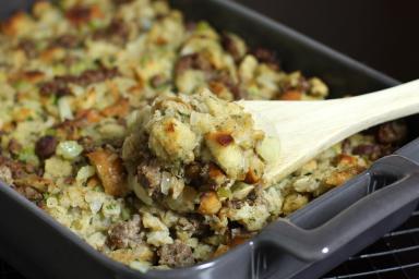 This delicious sausage dressing recipe is a great comfort dish. Add apples or cranberries if you want to add a fruity and sweet flavor to your stuffing!