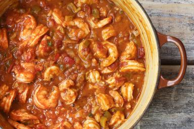 Add the clam juice or shrimp stock and tomatoes, along with 1 tablespoon of the Creole seasoning, bay leaf, and ground black pepper. Bring to a boil. Reduce heat to low and simmer for 30 to 45 minutes, or until the vegetables are softened.
