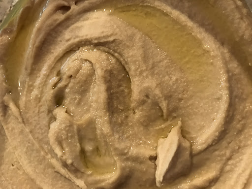 Place all the ingredients, except the chickpea liquid in a food processor, Process until very smooth, at least 1 minute, Add liquid one tablespoon at a time, until desired thickness is achieved. Check seasonIng.