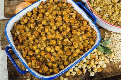 3) Place mixture in shallow baking dish, bake at 350 degrees for 2 hours (for crispy stuffing).
