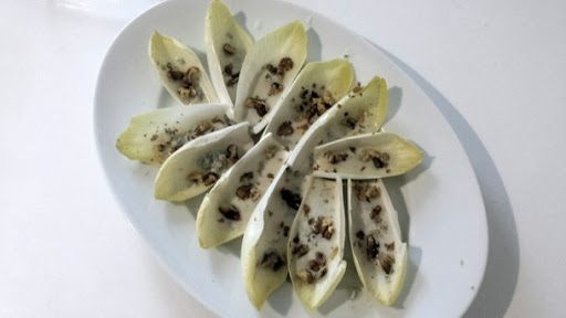 This is a light, healthy antipasto made with Gorgonzola which tastes creamy and indulgent at the same time. The gorgonzola compliments the bitterness of the Chicory. It's also super-quick to prepare.
