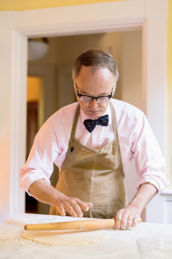 Hang the dough over the rolling pin and transfer to a 9-inch pie pan. Gently ease the dough into the pan by lifting the edges while pressing down into the corners of the pan.