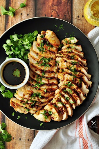 In a large plate, arrange chicken pieces. Pour the sauce onto the chicken and garnish with cilantro. Enjoy the drunken chicken!