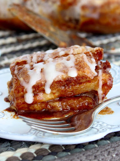 Bake for 30-35 minutes or until the top is starting to crisp and brown. Let set at least 10 minutes before serving. Drizzle with remaining glaze just before serving.