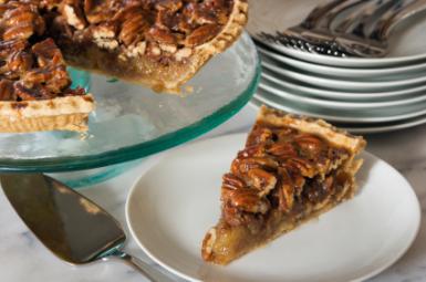 Pour filling into prepared pie crust and place remaining pecan halves around the top of the filling.