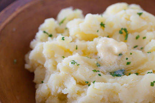 Drain potatoes thoroughly. For the smoothest potatoes, you can put the potatoes through a ricer at this point. Transfer to a large bowl. Add remaining ingredients to the bowl. With an electric hand-held mixer, beat potato mixture until light and creamy.