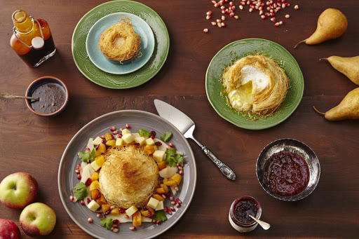 Vermont Creamery St. Albans: a cow’s-milk cheese, is the funkiest of this bunch, with notes of buttermilk and fermenting hay. Bake it in the crock it comes in, with kataifi set directly on top. A drizzle of caramel makes a nice complement. vermontcreamery.com