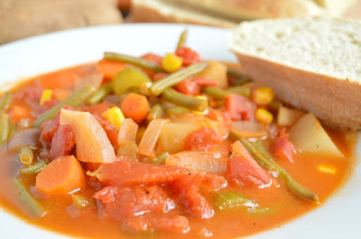Add the corn, peas, and green beans and any other veggies you like. Continue cooking until all the vegetables are tender (check the potatoes). Remove the bay leaves before serving.