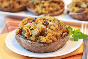 Distribute stuffing mixture among the mushroom caps. Bake until slightly crisp on top, about 12 minutes. Serve 'em up!